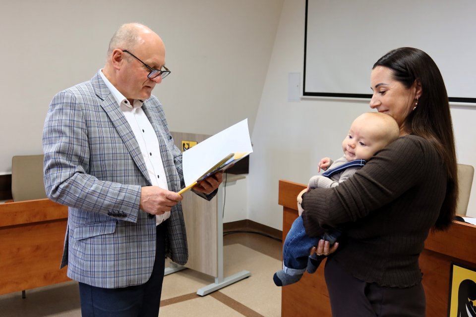 Do Urzędu Miasta w Piławie Górnej 24 października zawitał malutki Nikodem wraz ze swoją mamą. Z tej wyjątkowej okazji burmistrz Krzysztof Chudyk złożył rodzinie serdeczne gratulacje oraz przekazał upominki w ramach programu „Piławska Wyprawka”.