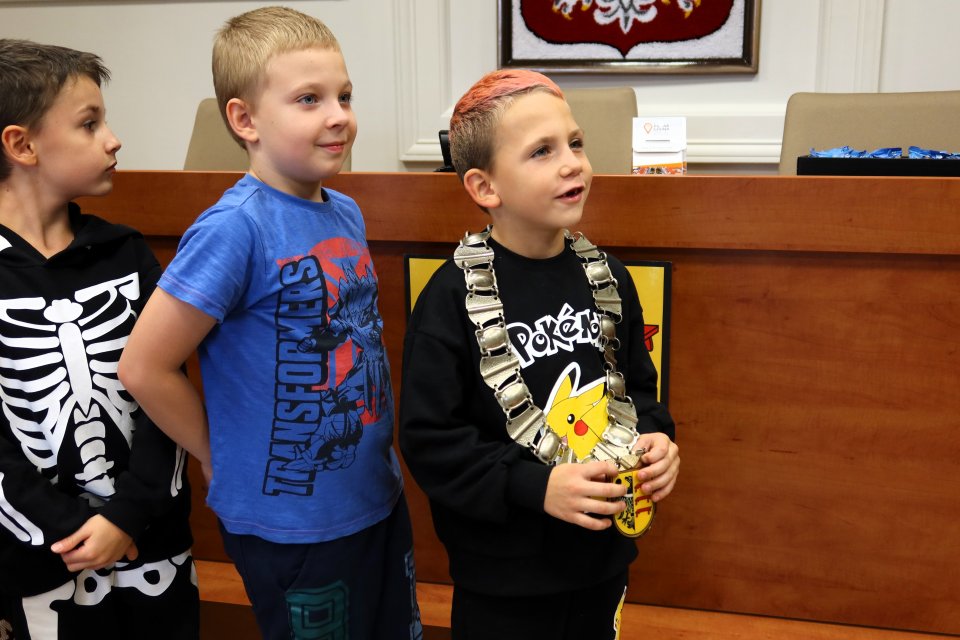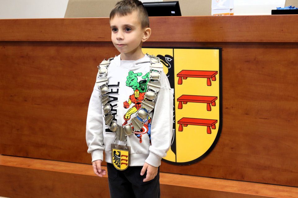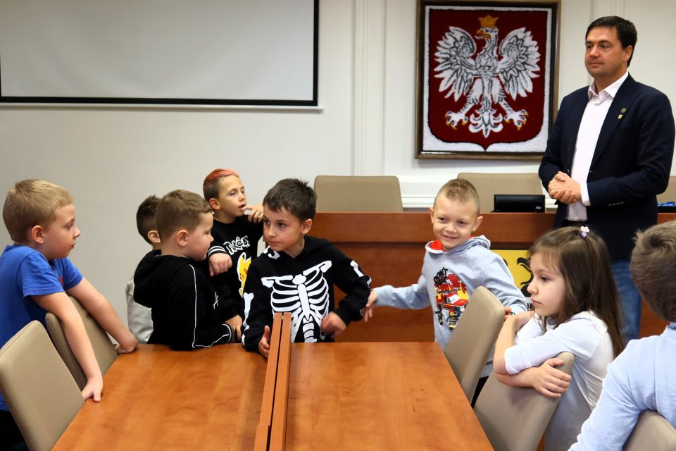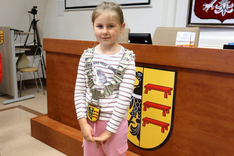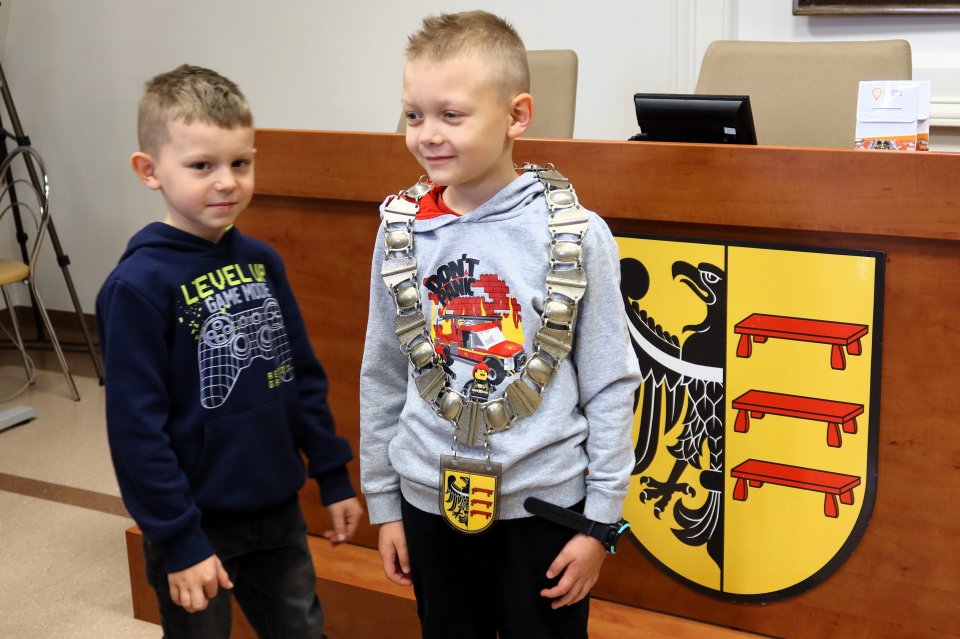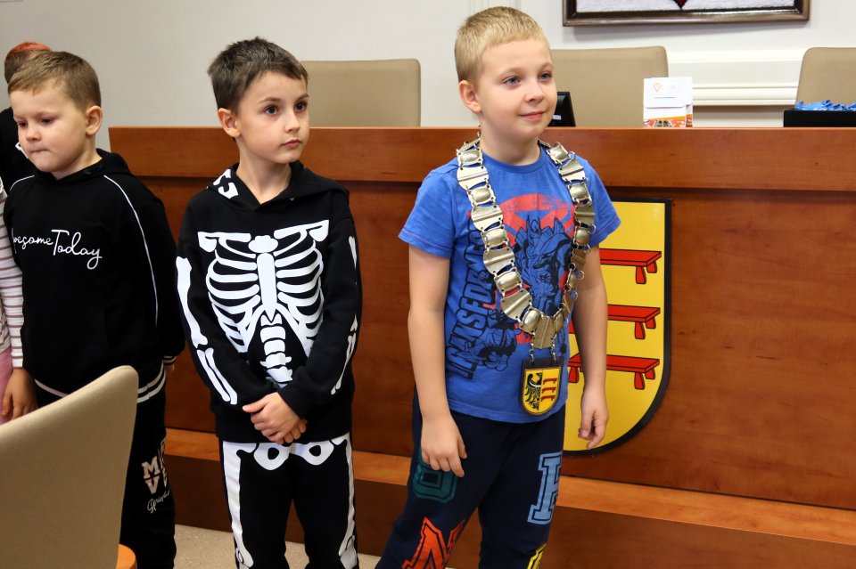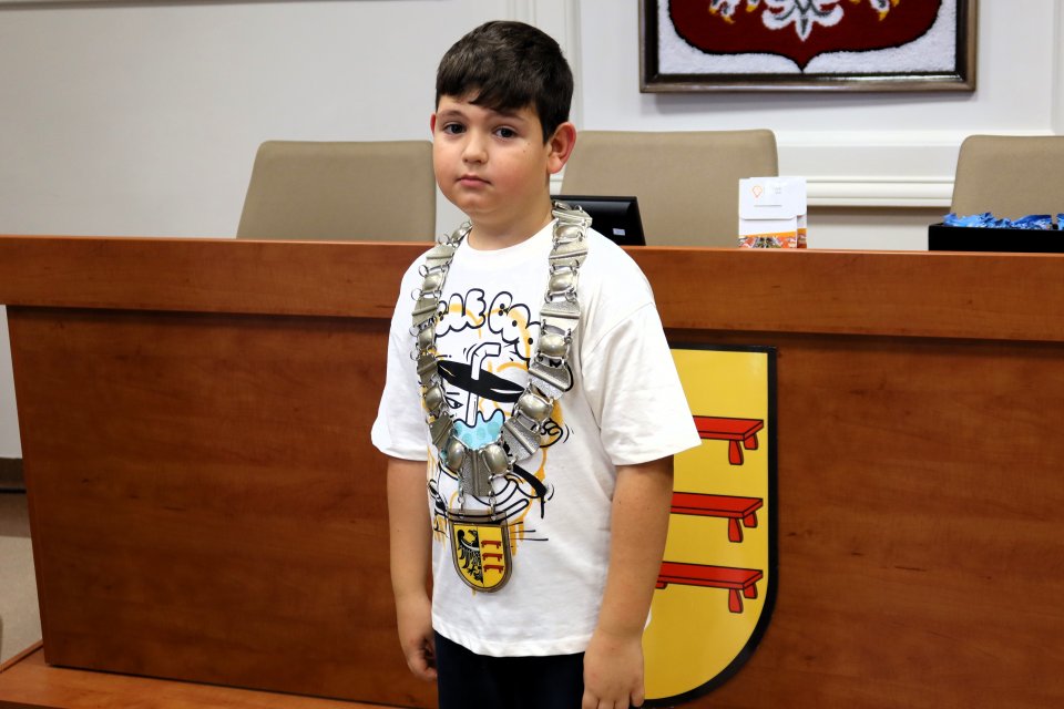 Jednym z punktów programu była wizyta w sali posiedzeń. Na uczniów czekał tam Przewodniczący Rady Miejskiej w Piławie Górnej Dariusz Madejski, który opowiedział im jak wygląda praca radnych. Dzieci mogły nawet przymierzyć łańcuch przewodniczącego Rady, co wywołało wiele radości.
